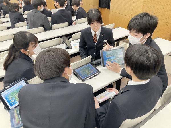 今日は、「架空の島に発電所を作るとしたら?」というテーマで、その島の住民として「村長」「漁業従事者」などの役割になりきって話し合いを行い、考えをまとめました。