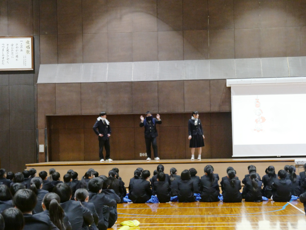 そして、生徒会が学校での生活を劇やクイズ形式で紹介しました。