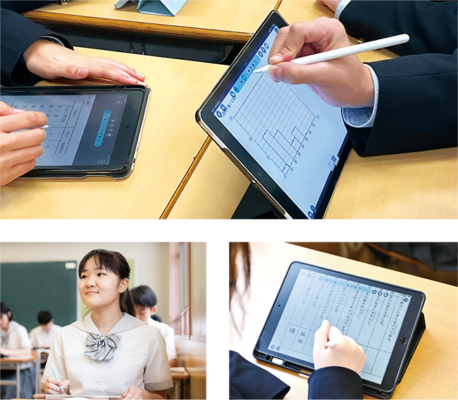 iPadとの親和性が高く、生活の記録や週1テスト、KTN、課題の配布·提出など、あらゆる場面で活用されています。共同作業も行うことができ、考える力を引き上げるツールとして、どの授業でも積極的に使われています。