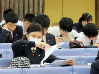 A 生徒だけでなく、先生も一緒になって学ぶところが学校です。学習が得意な生徒もいれば不得意な生徒もいますが、みんなが新しい知識や技能を習得し、学ぶ意欲や喜びを感じることができるよう、私たち教職員は、常に研鑚していくよう心がけています。本校では、1,2学期末には「授業アンケート」を実施し、生徒から率直な意見を出してもらって、授業作りに生かすようにしています。さらに、研究テーマを設け、年に1回、全ての先生が研究授業を行い、互いに授業を参観し合いながら、授業改善・指導力向上のための研修を行っています。また、校内研修会にも取り組んでいます。本年10月には英語力をテーマに研修会を行い、全教職員が"英検3級"の問題に挑戦しました。